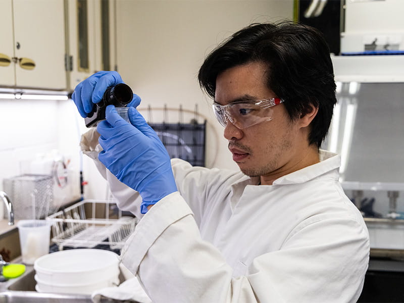 Our clean seas research investigates the impacts of ocean pollution on the health of marine ecosystems. Changing environmental conditions and continued input of waste and pollutants into the ocean add significant stress to its capacity to sustain life. Plastic waste may cause physical harm to marine animals, from a turtle entangled in plastic fishing nets to whales ingesting plastic particles. Other pollutants lurking in Puget Sound include 6PPD, a chemical used to coat rubber tires to reduce degradation that can be extremely harmful to fish, especially coho salmon. Our work in this priority area includes monitoring microplastics and marine debris, as well as scientifically testing alternatives to plastics.