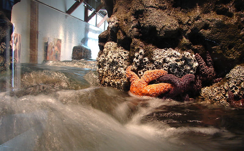 Step up, lean over and reach in—watch what happens when you gently touch a sea cucumber with one wet finger. Get a “hug” from a sea urchin. Follow the scuttling steps of a hermit crab. Notice how, even though they seem to be completely still, sea stars are always moving. Inhale the rich scent of seawater.