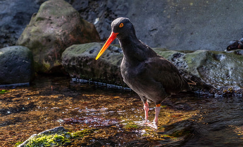 This beautiful open-air habitat highlights the rough and rocky shorelines of Puget Sound, and the many species of sometimes reclusive birds that can be found there. Watch tufted puffins and rhinoceros auklets make their dazzling dives. See common murres and black oystercatchers up close. Observe the dramatic changes in some birds’ plumage from summer to winter. Above the waterline are rocky cliffs where the birds can burrow or nest in small caves or narrow ledges, just as they would in the wild during breeding months.