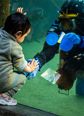 Choose your view—you can watch animals swimming and diving underwater, on the surface from a spot at the edge of the habitat or from a comfortable perch in our seating areas.