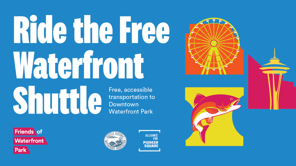 A free shuttle is available to take folks all along Seattle’s downtown waterfront from the Space Needle to Lumen Field. The Seattle Aquarium is conveniently located near Stop C on the shuttle’s route. Shuttles arrive approximately every 15 minutes and run 10am–8pm daily. The shuttle operates from May 24–September 2.
